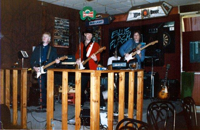 Back Alley was changed to Blue Flash in 1988 when Kathy left and consisted of Marty J and me (Guitars), Jeff (Drums) and Bruce (Bass). In 1989, Bruce left and was replaced by Frank (Bass). In 1990, Frank and I left the band. Frank "Bird Dawg" Jones came in on bass. During 1990, Blue Flash was in the studio and in 1991, released a tape. With that release and since that time, Marty J has continued the tradition started in Phil 'N The Blanks and has evolved it into his own brand of "Rockin' Blues". Check out the "Blue Flash" page to see his current line-up and the latest happenings.